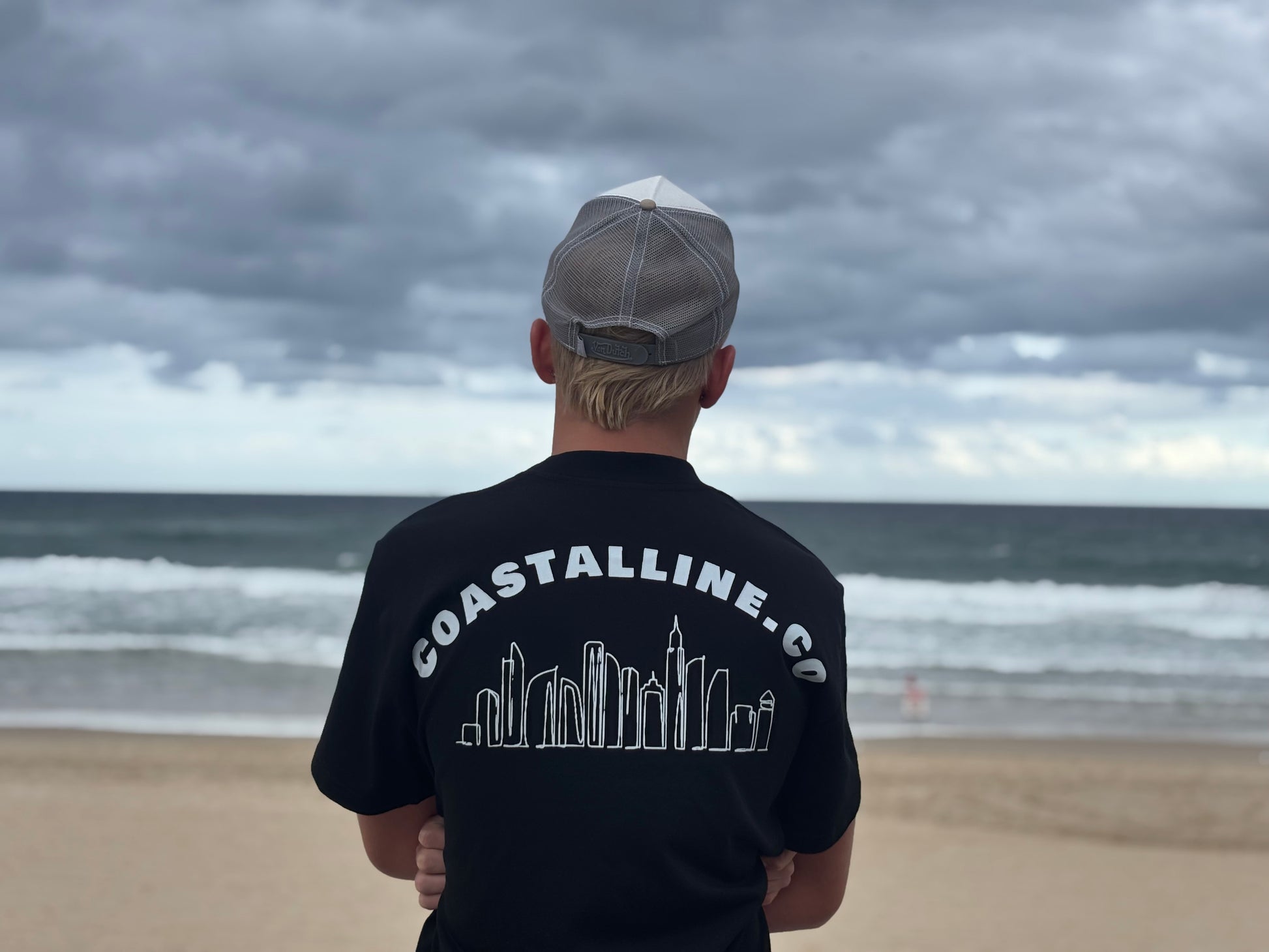 Keep it simple with our Coastalline Skyline Tee. Made from soft, premium cotton, this classic black tee features a clean front and a bold skyline graphic on the back, finished with our signature COASTALLINE.CO branding. Designed for everyday wear, it’s comfortable, versatile, and easy to style perfect for the coast, the city, or anywhere in between.